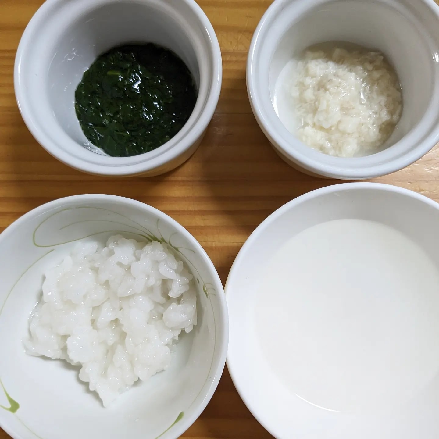 - おかゆ: 最初は滑らかなペースト状のおかゆから始めます。